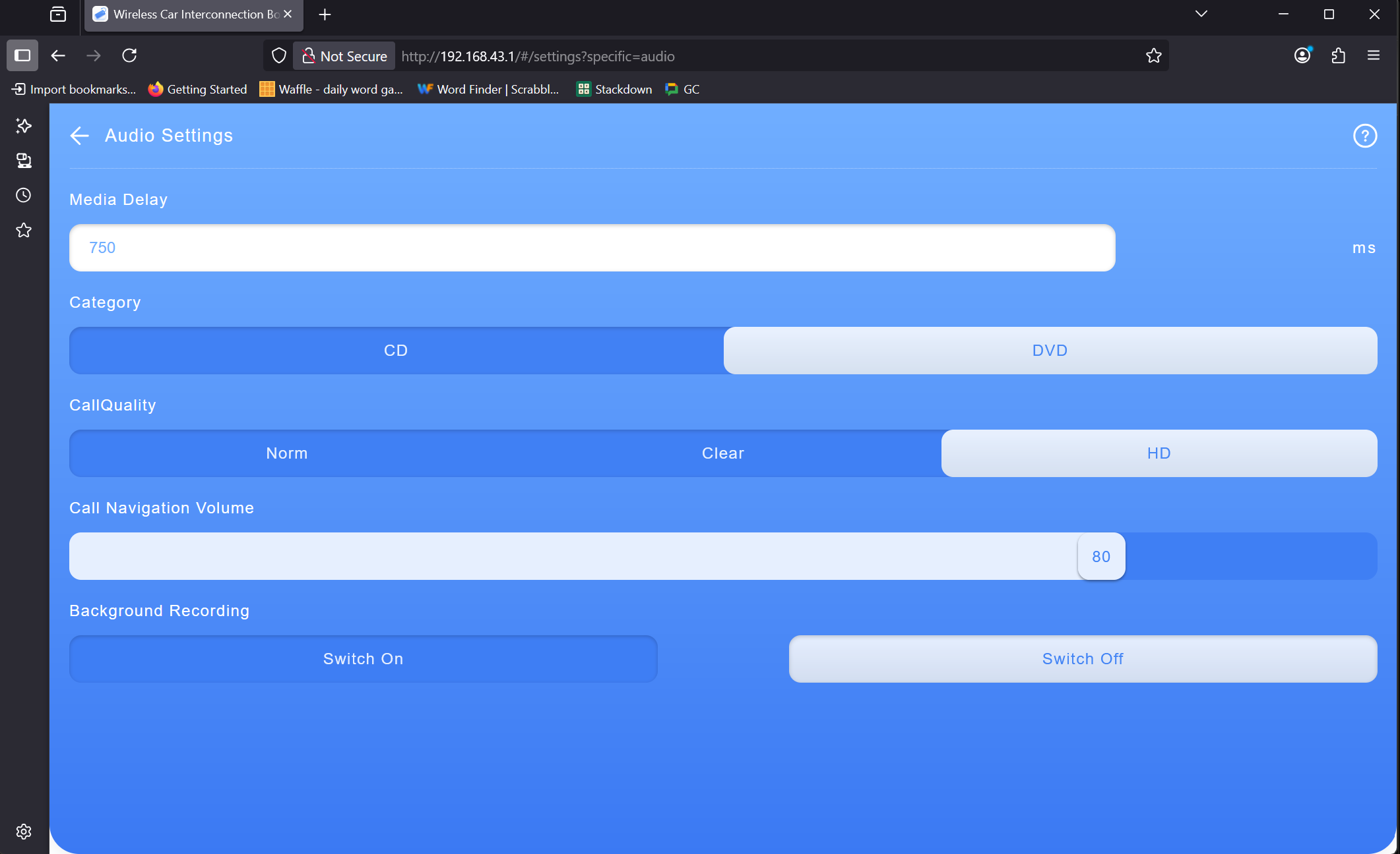 5) When the webpage loads, click on Audio Settings and try changing them to the attached.